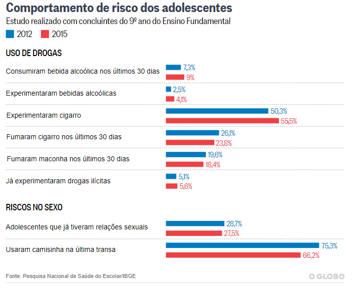 Disponível em: https://oglobo.globo.com/sociedade/uso-de-drogas-aumenta-entre-os-adolescentes-no-pais-19996988 Acesso em 27 jul 2017